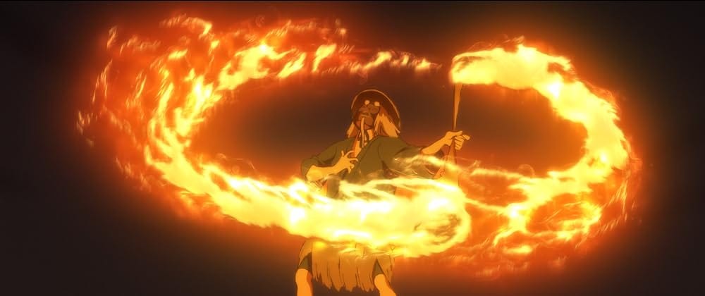 A culmination of song and dance can be enchanting, even more so in a film, presenting both in musical form. Musicals, when crafted with heart, complement the cinematic fantasia well. Masaaki Yuasa's Inu-oh captures the fresh spirit of historical interpretation, and while there is some sacrifice, it is granularly joyous. The marriage between Japanese Noh and rock opera reinvents the presentation of musical theatre in animation, visually justifying the grand scale of each and every successive performance. Inu-oh follows the titular Inu-oh, a high-spirited, deformed boy born with a curse, and Tomona, a blind biwa musician. Both have a chance encounter one night and find harmony in Inu-oh creatively dancing to Tomona's music. To successfully break the curse, the two band together, showcasing their talents. Their relationship is fascinatingly unique, something like a promoter and an artist. Except the promoter, Tomona, is equally as talented, as he writes original lyrics to advertise the one-of-one shows that Inu-oh will put on.